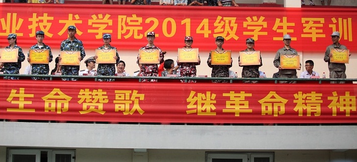 在14天的军事训练活动中,我校2014级新生发扬“团结拼搏、勇往直前”的军训精神,用坚强的意志、刻苦的训练战胜了风雨、疲劳等各种困难,圆满完成了训练任务,为今后学习与生活打下了坚实的基础,希望他们今后能再接再厉!, |
