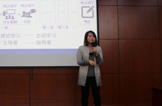 11月19日下午,我校邀请了超星集团慕课编辑部资源创意中心主任、视频总监孔鑫凯女士来校作《慕课时代下的课程建设和网络教学》专题讲座。校党委副书记、副校长周志春、各教学单位院长(主任)、副院长(副主任)及200多名教师听取了讲座。