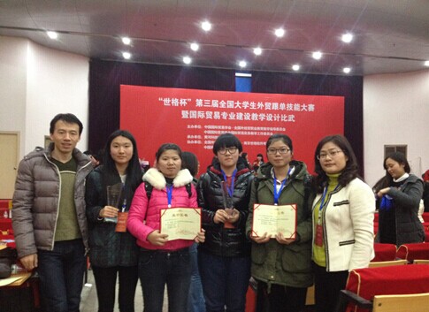 | 近日,“世格杯”第三届全国大学生外贸跟单技能大赛暨国际贸易专业建设教学设计比武落下帷幕,我校商学院学生在翁春颖、徐宣全、孙建军和许辉等4位老师的指导下再获佳绩:两个代表队分别获得团体特等奖和团体一等奖,其中汪佳依、陈俐方、俞燕3位同学分获个人一等奖,蒋钰同学获个人二等奖,袁娅娅和翁春颖两位老师在国际贸易专业建设教学设计比武评比中均荣获二等奖。