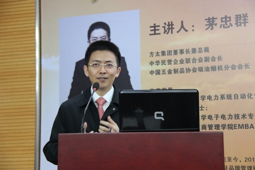 | 2月28日上午,我校中和楼报告厅内高朋满座,由我校和浙江在线宁波站、上海交通大学校友会宁波分会联合主办的21世纪海上丝绸之路宁波新媒体论坛第二讲开讲。 第二期主讲嘉宾为方太集团董事长兼总裁茅忠群。在近20年的发展中,方太从企业的意义和价值出发,无论是产品开发,还是服务售后,始终以用户为中心,成就了高端厨电领导者的地位。茅忠群在论坛现场与我校师生和网友分享了他们独特的管理经营理念,方太儒道。 茅忠群经过6年的摸索,将中国传统文化与西方的经营管理方法相融合,努力开创中国自己的经营方法,提出了“中学明道,西学优术,中西合璧,以道御术”的管理方针。使中西合璧,将两者糅合到一起。在糅合的过程中,以道御术,在引进西方管理的同时,用中国的道,在道德框架内运用西方管理的术。方太的核心价值观就是“人品 企品 产品 三品合一”。方太的使命是让家的感觉更好。今年方太的目标,就是成为一家伟大的企业。
