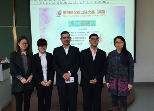 | 4月12日,第四届全国口译大赛浙江赛区比赛在杭州举行,我校选派的3名选手取得了优异成绩,其中英语1323班李凌翔同学获得高职组冠军,英语1323班黄伊蕾同学获得高职组二等奖,英语1422班徐宏磊同学获得高职组三等奖。另外,我校还获得高职组团体总分第一,李凌翔同学获得本科组三等奖。