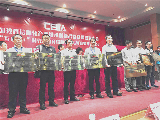 | 日前,中国教育信息化产业技术创新战略联盟(CEIIA,以下简称联盟)成立大会暨“互联网+”时代的教育信息技术与教育变革研讨会在华南师范大学举行。大会举行了联盟成立揭牌仪式,联盟负责人、副理事长单位授牌仪式和专家委员受聘仪式。教育部、科技部原副部长、全国政协教科文卫体委员会副主任、中国产学研合作促进会常务副会长陈小娅等领导以及我校党委书记蔡泽伟,来自全国教育信息化领域的各界代表300余人出席了大会。我校校长姚奇富当选联盟副理事长,我校地方服务处负责人接受联盟副理事长的授牌。
