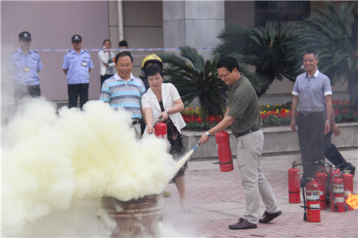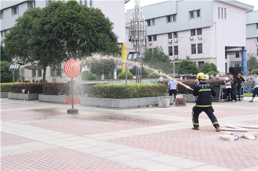 演练活动结束后,鄞州区消防大队古林中队队长助理刘有明还结合实际工作经验,为师生讲解了火灾时的注意事项及有效逃生方法,并安排消防员进行水管打靶灭火示范。最后,我校师生在消防员的指导下进行了干粉灭火器灭火练习。