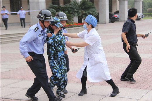 根据演练计划,火灾是由图书馆二楼走廊处一线路老化引起的,升腾的烟雾触发了报警器,图书馆楼管员发现火情后,立即切断电源并拨打校园“110”和火警电话119,由校园“110”通知学校领导,启动消防应急预案,指挥中心立即开展工作,现场工作组、信息综合组、安全保卫组、后勤保障组、机动工作组按照责任分工相互配合、有序工作。