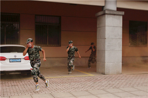 | 9月18日下午15:30分,我校图书馆突然起火,顿时报警器长鸣,多名师生被困馆内,情况危急……原来这是为了提高广大师生的逃生自救能力,增强师生消防安全意识,保卫处根据学校2015级学生军训计划日程开展的大规模消防逃生应急演练的一个场景。