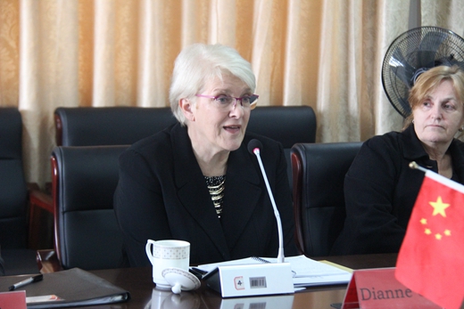 | 11月3日,在教育部国际合作司观察员的见证下,由澳大利亚技能质量署(ASQA)副署长戴安娜•奥尔(Dianne Orr)任组长、监管事务经理简. 莫可丽(Jan Mulcahy)、监管事务主管斯蒂文.莫瑞森(Steven Morrissey)中国教育国际交流协会(CEAIE)涉外办学质量保障部副主任何培组成的认证组和教育部国际合作与交流司相关人员一行10人对我校中澳国际商务专业和中澳会计专业的文凭证书和职业资格证书教育进行了全面质量检查,我校党委副书记、副校长周志春、副校长徐盈群及相关部门负责人,以及霍姆斯格兰学院海外项目商务专业主任Pauline等出席了认证见面会和总结会。
