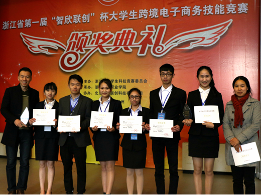 | 近日,浙江省第一届大学生跨境电子商务技能竞赛落下帷幕,我校选派的2支代表队凭借优异的表现,夺得了1个一等奖和1个二等奖的骄人赛绩。其中华立、陈嗣义、叶青青同学组成的Davince Shoes团队(指导教师许辉、张军)以总排名第一的成绩获得大赛一等奖;郑美凤、戚罗卿、王磊同学组成的So-To团队(指导教师陈静红、许辉)获得大赛二等奖。