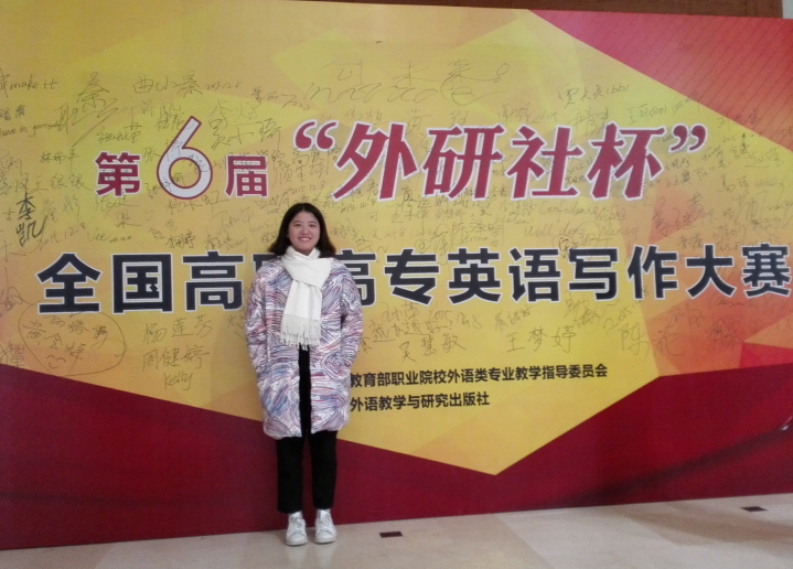 | 近日,由教育部英语教指委主办的第六届“外研社杯”全国高职高专英语写作大赛总决赛在北京落下帷幕。我校选手会计1411班王晨瑶同学作为浙江省高职高专实用英语写作大赛特等奖获得者,代表浙江省参加了此次全国总决赛,取得了全国二等奖的优异成绩,位列全省高职院校第一。