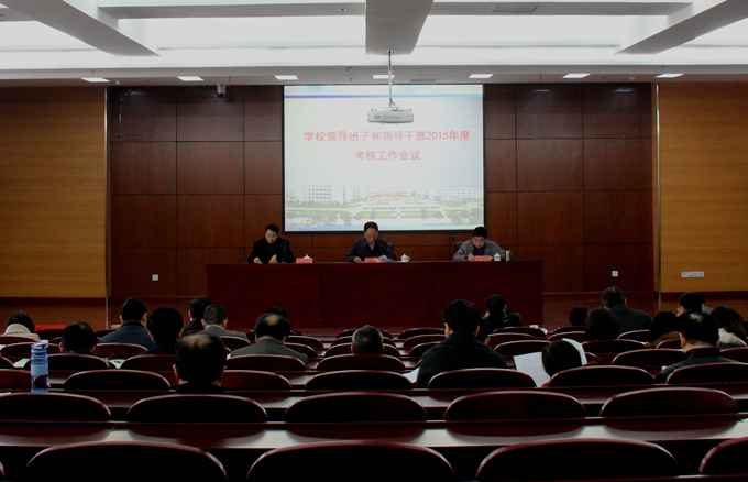 | 2月25日上午,学校在中和楼217报告厅举行了领导班子和领导干部2015年度考核工作大会。省商业集团有限公司纪检监察室主任、组织人事部副部长黄胜泉、组织人事部副部长童心等领导莅临指导。学校党政领导班子成员、中层干部、副高以上职称的教师、各民主党派负责人、八届四次教代会主席团成员等100多人参加了会议。会议由党委书记蔡泽伟主持。
