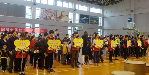 | 4月23日,由校妇委会与校工会主办,电子与信息工程学院、国际交流学院妇委会和公共课教学部协办的第七届教工亲子运动会在校体育馆举行。校党委书记蔡泽伟、副校长徐盈群等校领导以及校妇委会、工会等相关部门负责人出席了运动会的开幕式,来自各妇委会、分工会的150多个教工家庭参加了此次亲子运动会。开幕式由校妇委会副主任王国芬主持。
