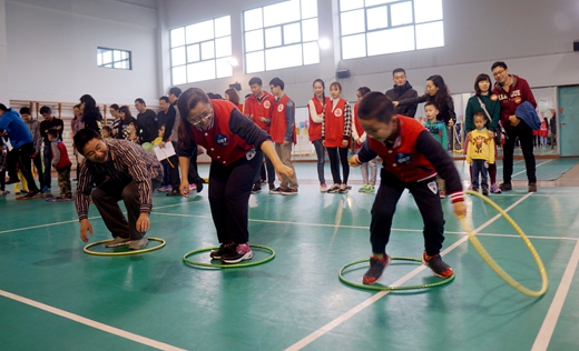 在欢快的儿歌声中,孩子与家长共同参与、认真竞技,技术指导与裁判老师配合默契、忙碌工作,校体育馆各个比赛区域气氛轻松、愉悦,充满了浓郁的亲情和友情。比赛结束,成绩优异的王春玲、徐顺波、张声雷等3个家庭荣获“活力家庭”大奖。