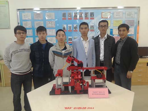 | 近日,第七届全国大学生机械创新设计大赛慧鱼赛区(2016)竞赛暨第九届全国慧鱼工程技术创新设计大赛在北京举行。经过为期两天的激烈角逐,我校宁海学院机电一体化技术专业阙行峰、万晓云、金崇伟、钱明杰、陈楷圣5位同学在朱科、徐智跃老师的指导下,设计并制作完成了“钱多多”系列1号快速硬币分拣包装机,夺得了本次大赛二等奖。