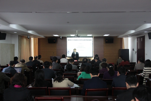 | 4月28日上午,学校在中和楼1007会议室举办了主题为“面向2030我国高等职业教育的发展”的专家报告会。报告会由浙江工业大学中国职业教育发展与评价研究院副院长、职业教育发展研究中心主任、教育部人文社会科学专家库成员陈衍教授主讲,学校领导班子,中层干部、各部门助理,各专业(教研室)负责人,各分院(部)综合办主任、副主任等参加了会议。