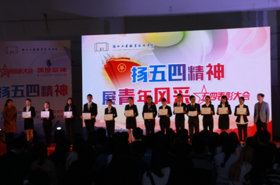 | 4月29日晚,我校“扬五四精神,展青年风采”五四表彰大会暨“偶是歌神”第十四届校园十佳歌手总决赛在我校绿色小广场举行。 歌声从这里传出,音符从这里飘扬,青春在这里激荡,梦想从这里起航。 本次五四表彰大会为获得2015年度浙江省优秀学生干部,宁波市先进团组织、先进大学生集体 , 先进团支书,宁波市优秀共青团干部和共青团员以及2016十佳学子等先进集体和个人进行了颁奖。