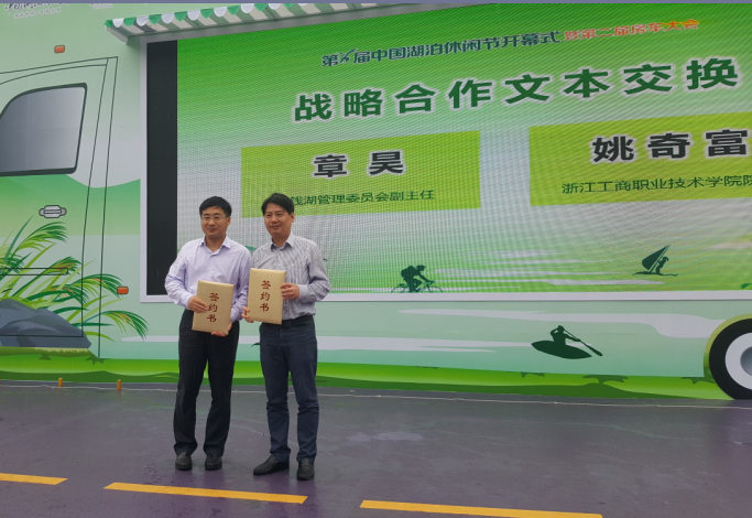 | 5月26日,主题为“湖泊休闲•幸福水岸”的第八届中国湖泊休闲节暨第二届房车大会在东钱湖开幕。本次活动由宁波市人民政府、浙江省旅游局、中国青年报社主办,由宁波东钱湖旅游度假区管委会、宁波市旅游局承办。宁波市副市长林静国,中国青年报社党组书记、社长、总编辑张坤,浙江省旅游局副局长叶建国,宁波市政府办公厅副秘书长金伟平,宁波市旅游局局长励永惠,东钱湖旅游度假区管委会主任叶继松,以及我校校长姚奇富、副校长徐永春等领导与嘉宾出席了开幕式。