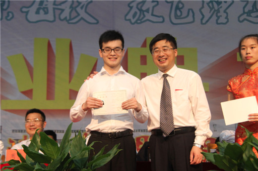 现场,姚奇富为学校2016届483位省(校)级优秀毕业生颁发了毕业证书,并和同学们一一合影。