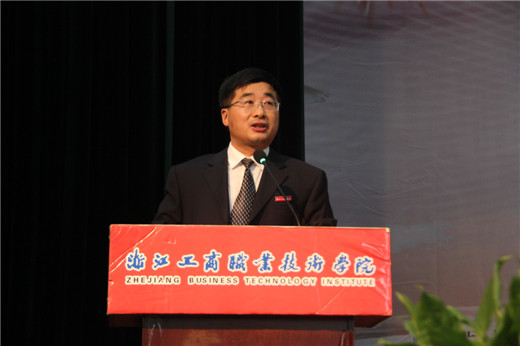 姚奇富代表学校在毕业典礼上致辞。他首先对2016届毕业生圆满完成学业表示热烈的祝贺和美好的祝愿,感谢同学们对工商这个大家庭的忠实陪伴,使学校取得了长足的进步,感谢同学们对学校的理解和宽容,使学校时刻警醒,继而全面推动综合改革,不断加强内部管理,提升服务效能。并寄语2016届毕业生:一是要永远保持读书学习、探索新知的习惯;二是要永远保持不畏困难、坚毅卓绝的品性;三是要永远保持敢于担当、勇于奉献的精神。最后希望同学们始终铭记“厚德、进业、明智、笃行”的校训,在未来,一如继往地关心、支持母校!