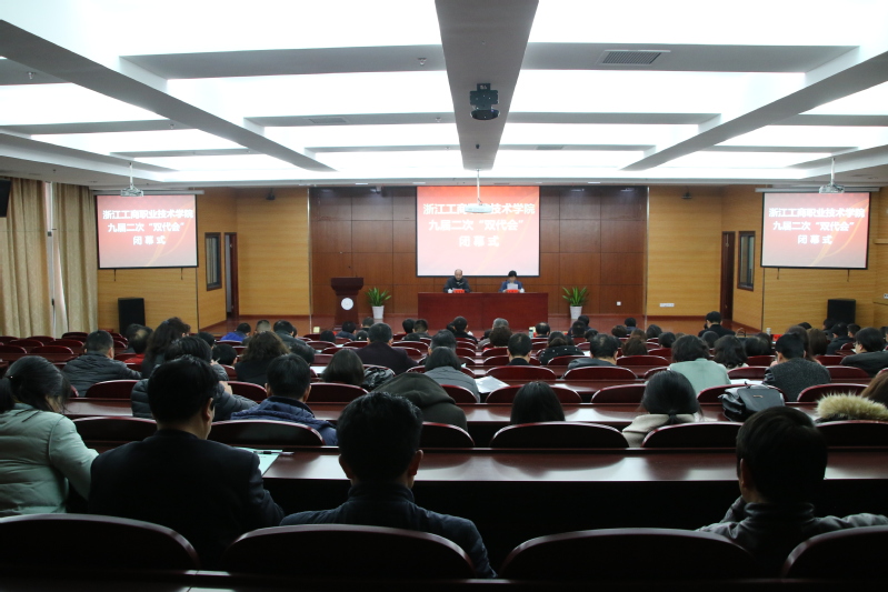3月2日,学校召开九届二次“双代会”闭幕式。会议由徐盈群主持。按照规定程序,会议对各代表团讨论后的意见汇总情况进行了说明,俞位增作提案工作报告。大会审议了学校《学校工作报告》、《工会工作报告》、《财务工作报告》、《工会经审报告》,表决通过了《浙江工商职业技术学院工会关于加强教职工慰问工作的指导意见(修订)》制度。