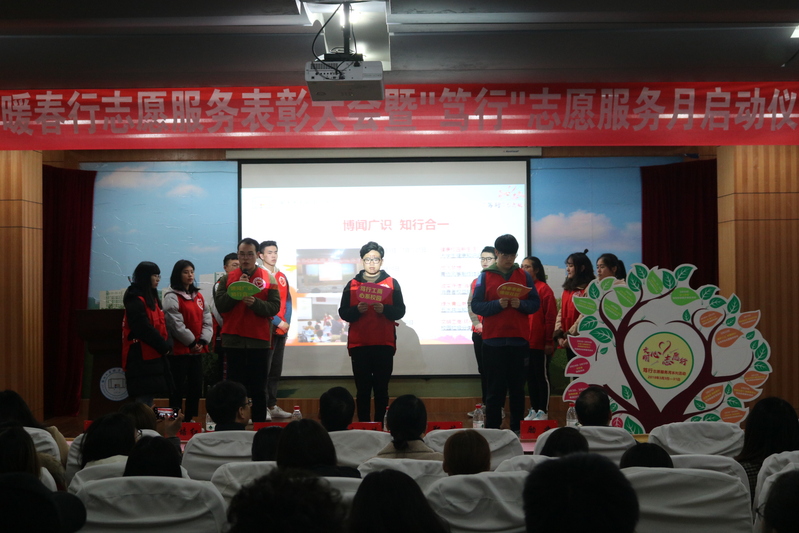 3月7日下午,2018“暖春行”志愿服务表彰大会暨“笃行”志愿活动服务月启动仪式在图书馆二楼报告厅举行。党委委员、副校长应晓清,学工部、团委、厚德书院负责人,经管学院、国际交流学院、旅游与健康学院党总支书记及辅导员、志愿者代表出席会议。