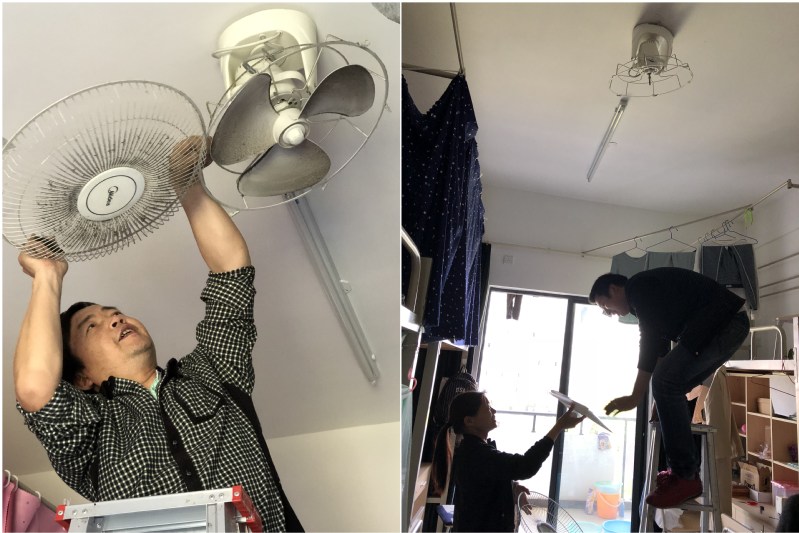 四月以来,气温在起伏中逐渐走高。为了给学生营造一个健康舒适的住宿环境,在公寓吸顶扇使用高峰期来临之前,学校后勤公司近期展开了为期一个月的学生公寓电风扇检修、清洗工作。