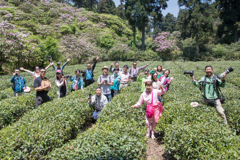 天台山华顶主峰海拔1098米,四周群山向而拱之,层层相裹,状如莲花,华顶正当花之顶,故名“华顶”。五月正值观赏高山杜鹃的最佳时间,会员们结伴同行,纷纷用镜头定格一花一叶、一景一物,还不时互相切磋摄影技术,交流拍摄心得。