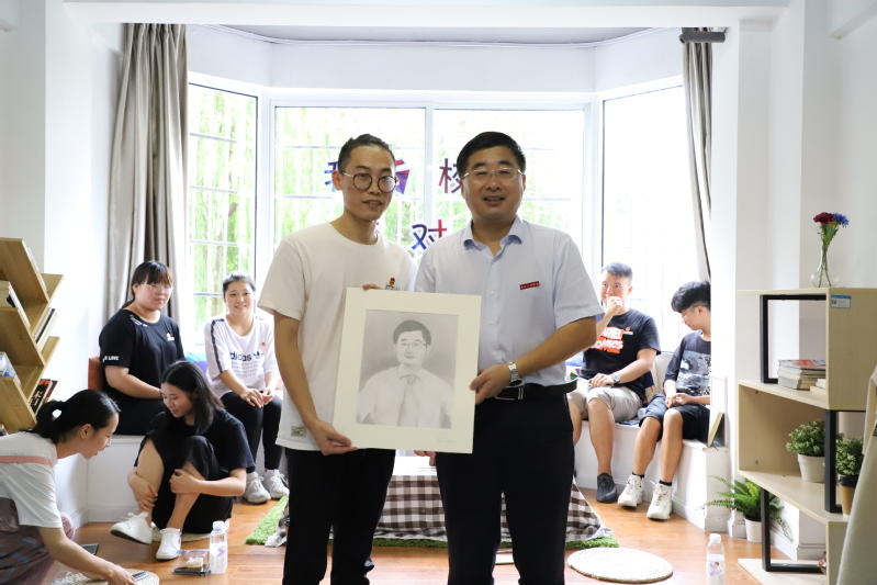 活动期间,姚校长与同学们一同参观了六号公寓楼功能房,并享用由学生自己制作的茶点,气氛温馨融洽。数字传媒学院的范永港同学还为校长画了一副肖像画作为礼物,为现场带来了惊喜,也向校长展示了工商学子的才艺特长。