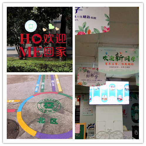 学生公寓楼下,书院公共活动区装扮一新。每幢公寓楼悬挂了迎新的吊旗,新添置了电视机,在接待大厅播放迎新事项、学校宣传片和学生活动视频等,让新生和等候的家长进一步了解到学校的文化和风貌;舒适、温馨的活动区和学习区让人眼前一亮,特别是楼内添置了冰箱、微波炉等生活用品,让家长放下了担忧之心。为了营造浓厚的温馨氛围,书院在社区进入口还安装了可夜间发光的“欢迎回家”标牌灯,贴心绘制了地面公寓楼地图,用一种彩色线代表一幢公寓楼的方式,指引新生顺利回寝。