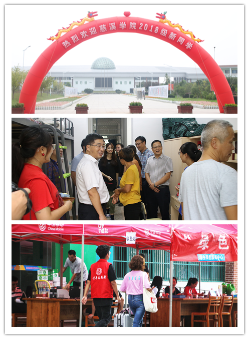 慈溪学院和现代模具学院作为最先迎来新生的学院,分别于9月13日迎来了128名旅游管理专业和200余名五年一贯制的新生,校长、党委副书记姚奇富,党委副书记俞位增,党委委员、副校长应晓清等校领导及相关职能部门负责人深入两个校区指导工作,慰问志愿者和新同学。此次也是宁海校区首次自主迎新,经过前期的精心策划和准备,有关工作进行得有条不紊,得到家长和新生的肯定。