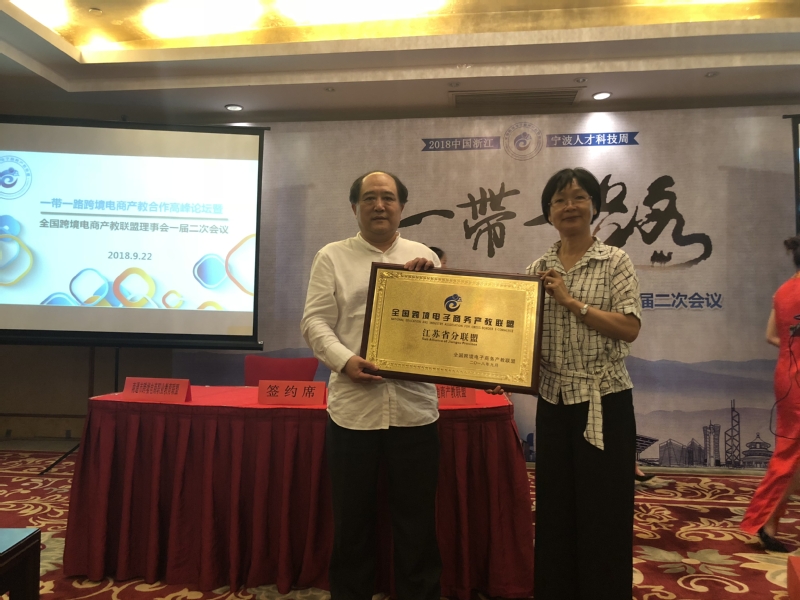 2018年9月22日,做为2018中国浙江•宁波人才科技周的重要活动内容,一带一路跨境电商产教合作高峰论坛暨全国跨境电商产教联盟理事会一届二次会议在宁波顺利召开,商务部研究院电商研究所所长张莉、全国外经贸行指委副主任陈树耀、宁波市教育局副局长刘昱、我校副校长兼全国跨境电商产教联盟秘书长徐盈群、宁波市口岸办跨境电商业务处副处长林维忠等领导出席,来自全国50余家大中专院校、跨境电商企业等单位近110人参加会议,会议由全国跨境电商产教联盟执行秘书长陈明主持。