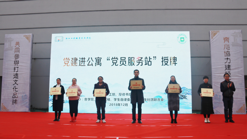 为了扎实推进党建进公寓,在校组织部、厚德书院党总支共同努力下,书院成立了“党员服务站”,谢骏为本次成立的6个党员服务站授牌。党员服务站代表殷帅帅老师发言,她表示作为站点老师将发挥好书院育人阵地新作用,将书院日常管理与先进学生考察表现考核相结合,做好“管”与“导”,发挥书院、学院党建新合力。为树立更多学生先进典范,由任一波老师、郑芳老师、励业老师、戴亚娥老师对学生党员寝室、学生干部寝室进行授牌,希望通过这些同学先锋模范作用带动更多同学营造书院良好生活风气、学习风气、为人风气。