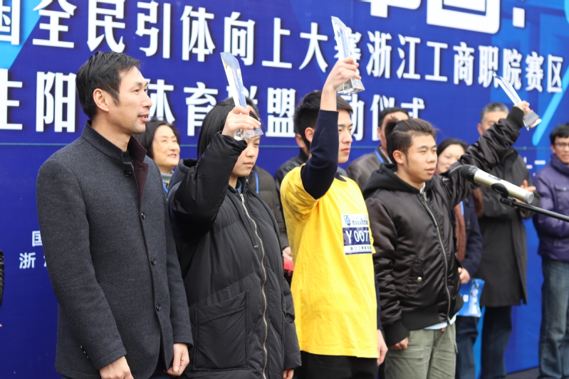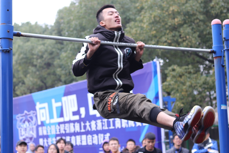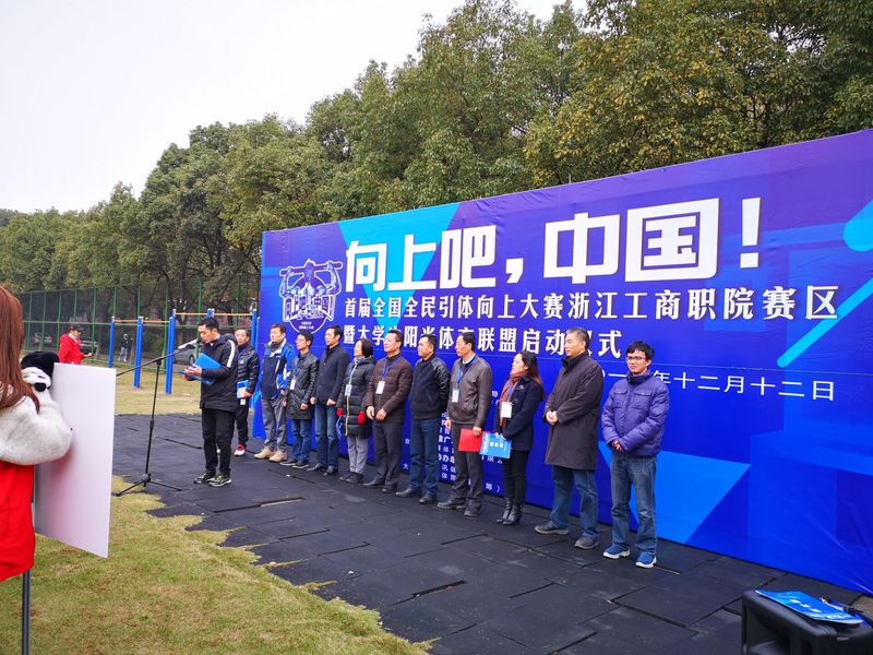 “向上吧,中国!”首届全国全民引体向上大赛浙江工商职院比赛是继清华大学后,全国高校赛的第二站。本站比赛开创出三个第一,第一次走进华东三省六市高校;第一次落地全国大专院校;第一次设立高校男子竞速引体项目并创造出全国高校竞速引体记录。与此同时,为贯彻落实教育部、国家体育总局、共青团中央《关于开展全国亿万学生阳光体育运动的决定》和习总书记在全国教育大会上明确提出“树立健康第一的教育理念”重要讲话精神,大赛现场还举行了校大学生阳光体育联盟启动仪式,努力营造“人人关心体育、人人了解体育、人人参与体育”的良好氛围,而大体联的成立标志着明年起我校大学生阳光体育竞赛活动将以此次大赛为契机在全校范围内拉开序幕。