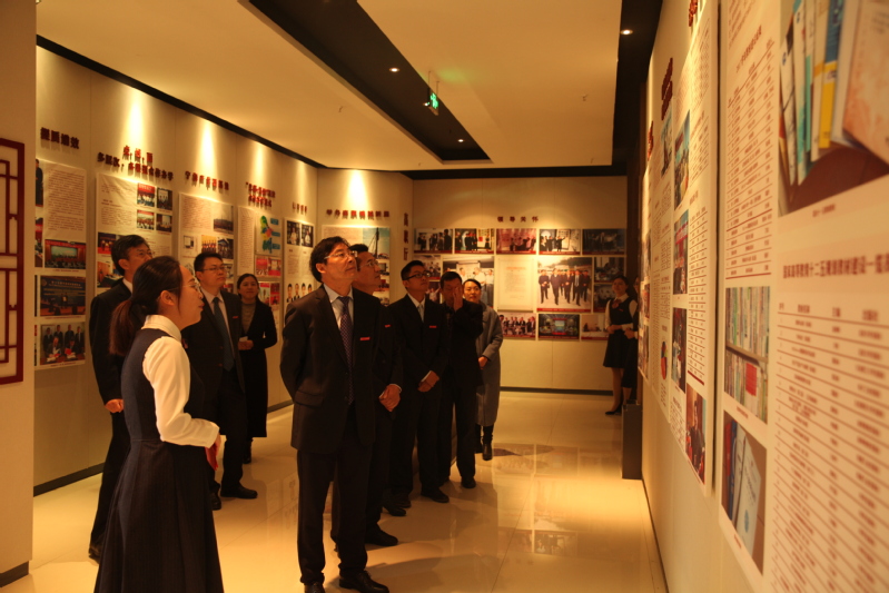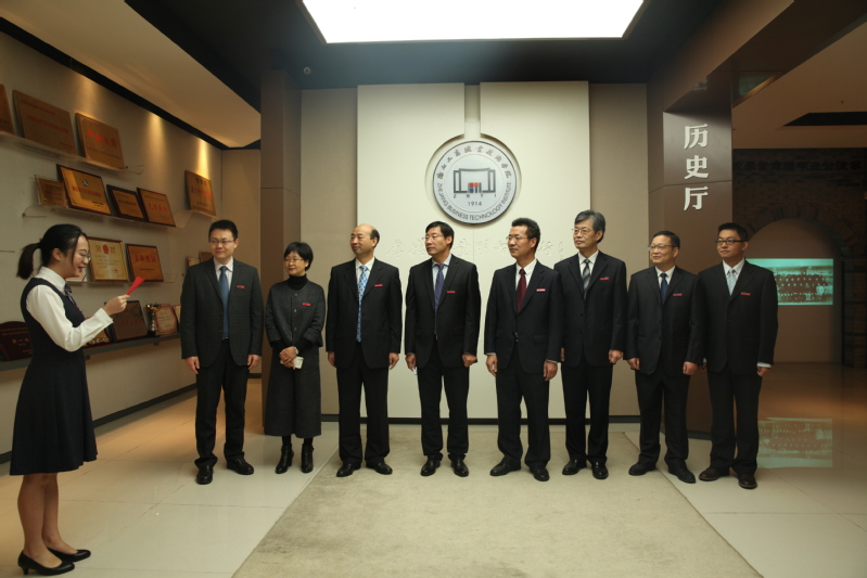 12月20日上午8:30分,全体校领导在党委书记陈仕俊、校长周志春的带领下,集体前往校史陈列室参观学校百年办学历史。