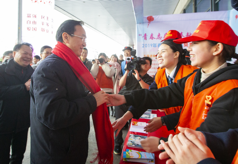 万部长与我校志愿者亲切交谈,高度评价了我校“暖春行”志愿服务活动,肯定了大学生志愿者不忘初心、奉献爱心的高尚情操与“奉献、友爱、互助、进步”的志愿精神,称赞同学们为缓解我市春运高峰做出了积极贡献。万部长还向志愿者代表赠送了慰问品,激励大家站好志愿这班岗,奋战春运第一线,为服务春运、服务社会贡献青春力量。