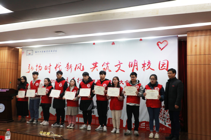 大会表彰了2018年度校十佳志愿者、五星志愿者以及2019年“暖春行”春运志愿服务优秀指导老师和优秀志愿者。