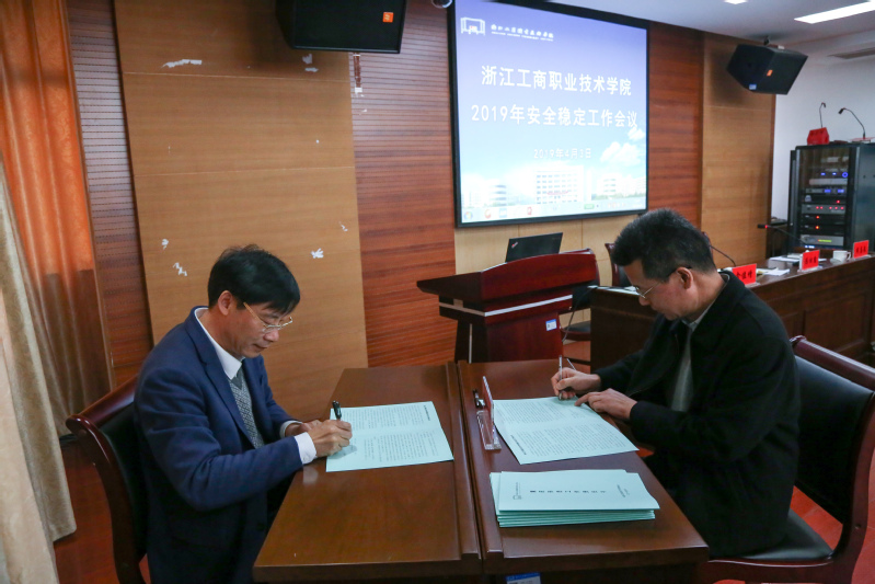 陈仕俊代表学校党委与领导班子成员、各部门(学院)负责人签署了意识形态责任书,周志春代表学校与各部门(学院)负责人签署了安全责任书。