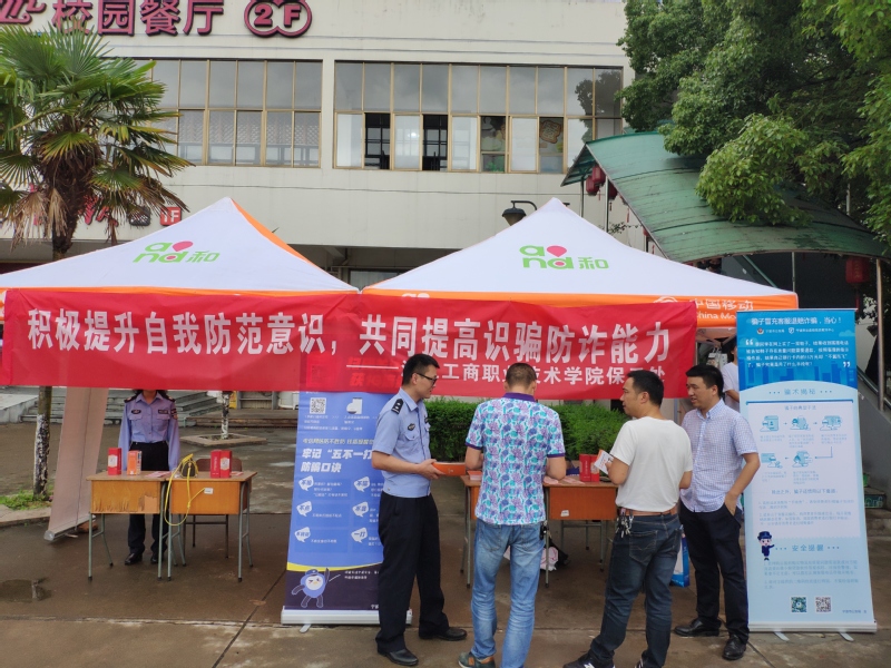 根据市公安局、教育局《关于深化“无诈校园”建设暨创建示范单位评估工作实施》要求和我校安全生产教育月活动需要,我校于6月14日中午在北区食堂门口开展了一次主题为“积极提升自我防范意识,共同提高识骗防诈能力”的防范电信网络诈骗宣传活动。