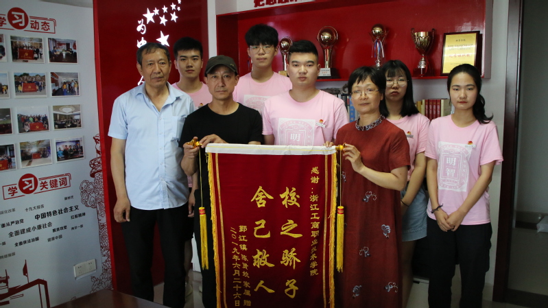陆先生想方设法联系上了学校有关部门,并最终得知了孩子们是学校经管学院的学生。6月27日上午,陆先生一行来到学校,当面感谢救助老人的4名同学,并送上一面题有“校之骄子,舍己救人”字样的锦旗。