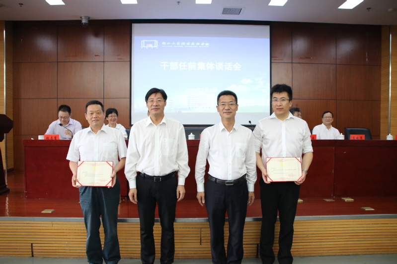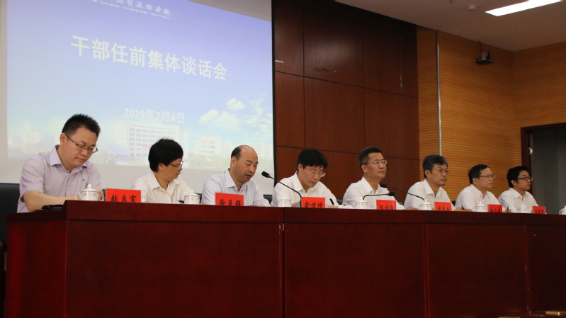 7月4日上午,学校在中和楼217会议室召开干部任前集体谈话会议,学校领导班子成员及全体新任职中层干部参加会议。党委书记陈仕俊作重要讲话,会议由校长、党委副书记周志春主持。