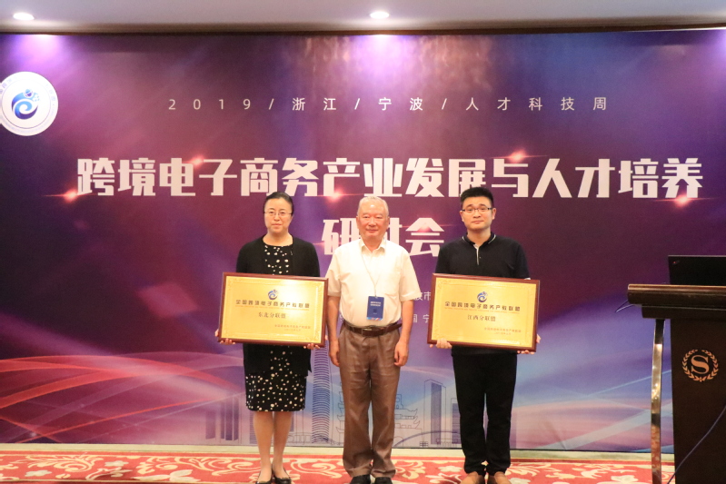 开幕式上周志春致欢迎辞,王乃彦代表全国外经贸行指委致辞,与会领导向全国跨境电商产教联盟新成立的江西分联盟和东北分联盟负责人颁发牌匾和聘书,并向阿里巴巴、俄速通集团和宁波豪雅集团等三家企业颁发双师型教师企业实践基地牌匾。