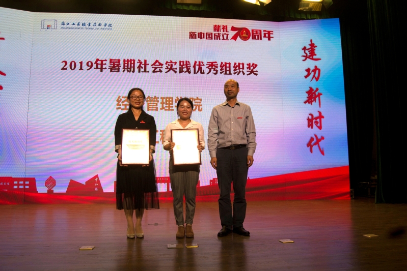 俞位增,宣传部、学工部、教务处、保卫处负责人,各学院党总支书记为2019年暑期社会实践优秀集体与个人颁奖。