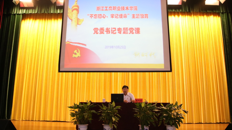 按照省委第二批“不忘初心、牢记使命”主题教育部署要求和学校主题教育工作安排,10月25日下午,校党委书记陈仕俊在博学楼报告厅以《不忘教育初心、牢记育人使命,勇挑学校高质量发展重任》为题,为我校近500名师生党员讲专题党课。省委第二巡回指导组副组长牟德刚、组员吴震杰应邀参会。