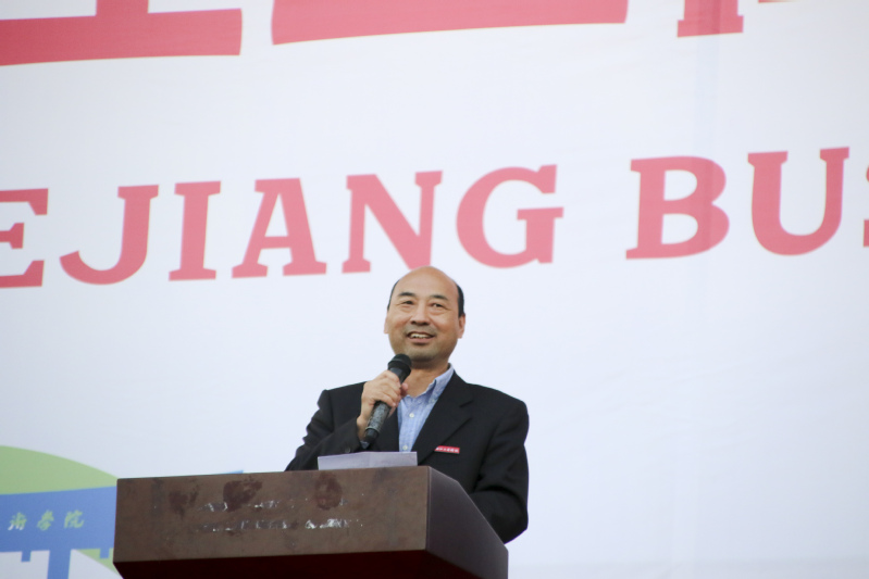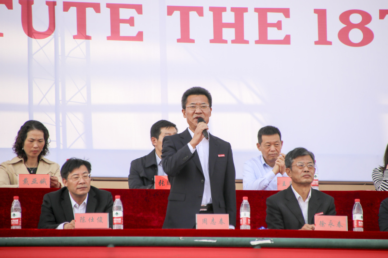 周志春宣布第十八届田径运动会开幕。本届运动会全校共有16支代表队共861名运动员参加了激烈的角逐,其中学生运动员565名,教工运动员296名;共设置了男女各17个竞赛项目,其中学生组竞赛项目35个,教工组竞赛项目34个(含趣味项目)。开幕式上,国旗护卫队、会徽护卫队目光坚毅、步伐整齐,鲜花队、彩旗队神采飞扬、活力四射;裁判员方阵和各个学院的方阵,朝气蓬勃、整齐划一;主席台前的展示表演精彩纷呈,体现出鲜明的专业特色和学院风采,表达了爱国爱校的情怀;现场还进行了第九套广播体操的表演赛,整齐有序的队列、矫健有力的动作充分彰显了工商学子团结拼搏、奋发向上的精神风貌,首次使用的日景烟火五光十色、响彻晴空,把现场的气氛推向高潮。