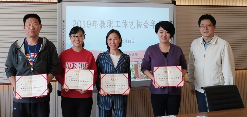 会上,袁腾辉宣读了2018-2019学年“优秀教职工体艺协会”和“优秀教职工体艺协会工作者”名单。随后,袁腾辉为韩包海、张英、董菊芬、田军4位“优秀教职工体艺协会工作者”颁发了证书。王国芬为瑜伽协会、健步走协会、羽毛球协会、摄影协会颁发了“优秀教职工体艺协会”奖牌。接着,各体艺协会的常务副会长分别回顾和总结了一年来各协会活动开展情况,并就如何开展下阶段工作展开热烈讨论,提出了许多合理化建议。