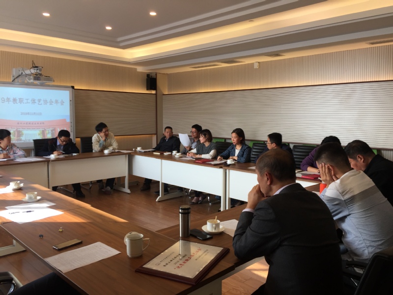 11月11日下午,校工会在中和楼10楼教工之家召开2019年教职工体艺协会年会,来自全校13个体艺协会的常务副会长参加了此次会议,校党委委员、组织部(统战部)部长谢骏出席会议并讲话,校工会副主席袁腾辉到会,会议由校工会副主席王国芬主持。