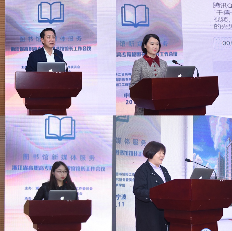 本次工作会议围绕图书馆新媒体服务为主题,分别由金华职业技术学院图书馆蒋静然、浙江机电职业技术学院图书信息中心副主任周秀梅、宁波卫生职业技术学院图书馆李静等分享图书馆如何应用新媒体讲好图书馆故事、创新服务模式、宏扬优秀文化,各具特色,内容详实新颖。我校图书馆馆长朱如龙从高度、深度、广度三个维度讲述了新时代背景下我校图书馆创新服务的实践探索,提出将图书馆打造成为“为读者提供智慧服务”和“实现图书馆智慧管理”的创新、融合和可持续发展的新型图书馆的目标。