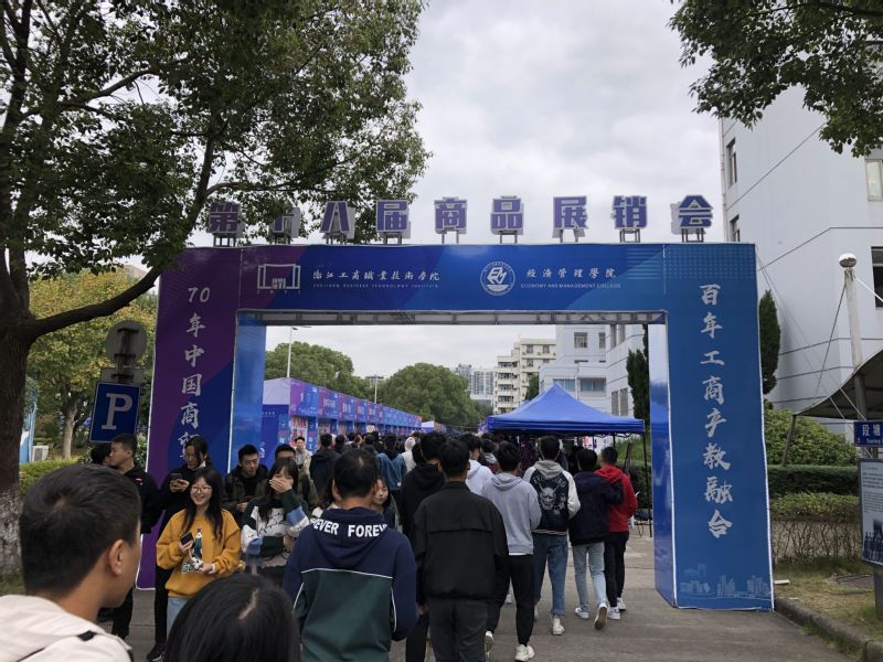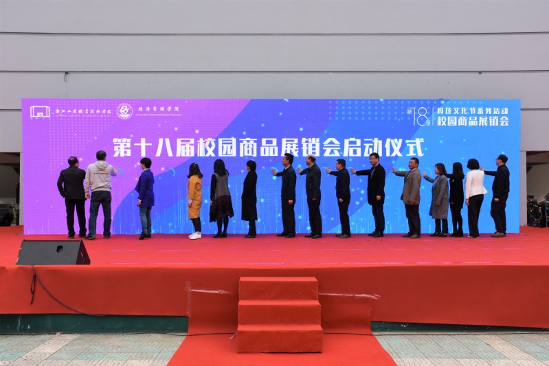 2019年11月20日—22日,我校举办了第十八届校园商品展销会。本次校园商品展销会由教务处、创业学院、学工部(学生处)、团委主办,经济管理学院承办,以“70年中国商贸巨变,百年工商产教融合”为主题,共设立173个摊位,分别为商贸风情区、精品美食区、专业实践区、校企合作区、品质展销区五大区域。20日下午,校长周志春,党委副书记俞位增,党委委员、副校长徐盈群,党委委员、组织部(统战部)部长谢骏,相关职能部门负责人,各分院负责人出席展销会开幕式。