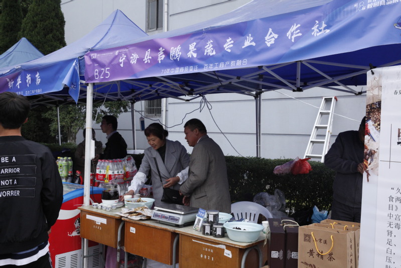 在学校组织部的大力推进下,本届商品展销会首次落实“精准扶贫”方针,宁海县黄坛镇盈坑村村支书张祖君带着400斤土特产(200斤黄精,200斤香榧)加盟商品展销会,销售额达8000余元。