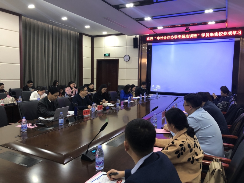 12月10日,由中国教育国际交流研修学院主办的“中外合作办学专题培训班”的36名学员来到我校参观学习,副校长应晓清、国际交流合作处处长王维平等接待来访。