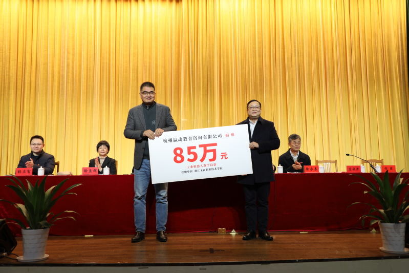 随后举行的捐赠仪式上,杭州赢动教育咨询有限公司董事长崔立标代表企业向我校捐赠85万元工业机器人教学设备。