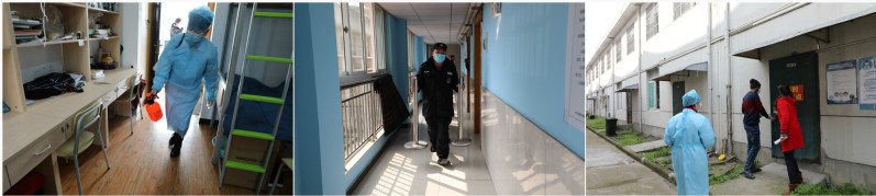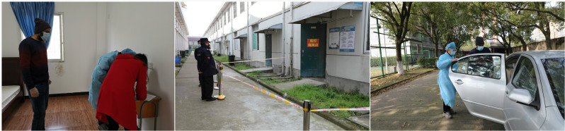 针对突发情况,校防控办在收到分院和后勤服务处报送的信息后经研究作出决定,指示后勤服务处向古林街道办及社区卫生服务中心报告相关情况,请求对方安排专车来校接该生到定点医院做进一步筛查。10分钟后,社区卫生服务中心专车到达,该生由专人陪同一起前往市定点医院,医务室工作人员对临时隔离点以及该生活动区域做进一步的消杀作业,疫情防控应急演练顺利结束。